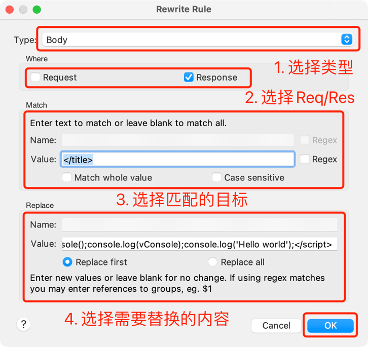 操作:在Charles—Tools—Rewrite设置给html请求的Response注入vconsole